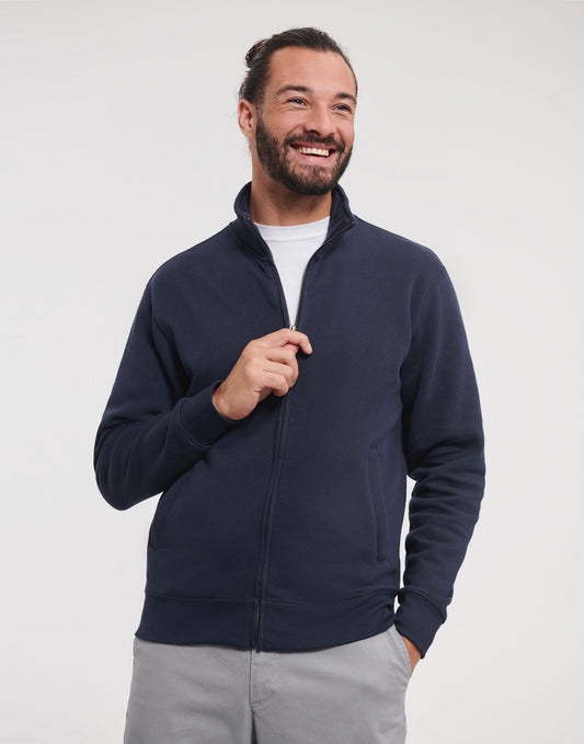 Miesten vetoketjullinen premium collegepaita painatuksella