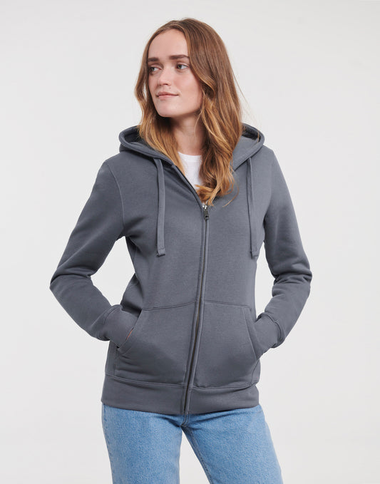 Naisten vetoketjullinen premium collegepaita painatuksella